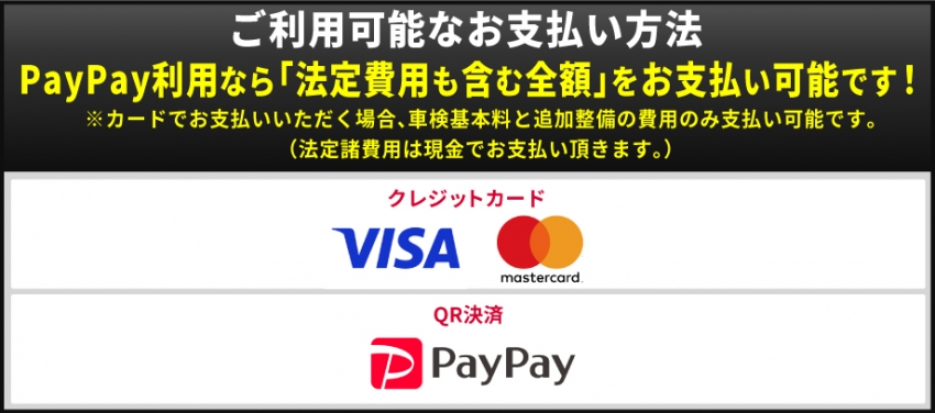 ※カードでお支払いいただく場合、車検基本料と追加整備の費用のみ支払い可能です。
